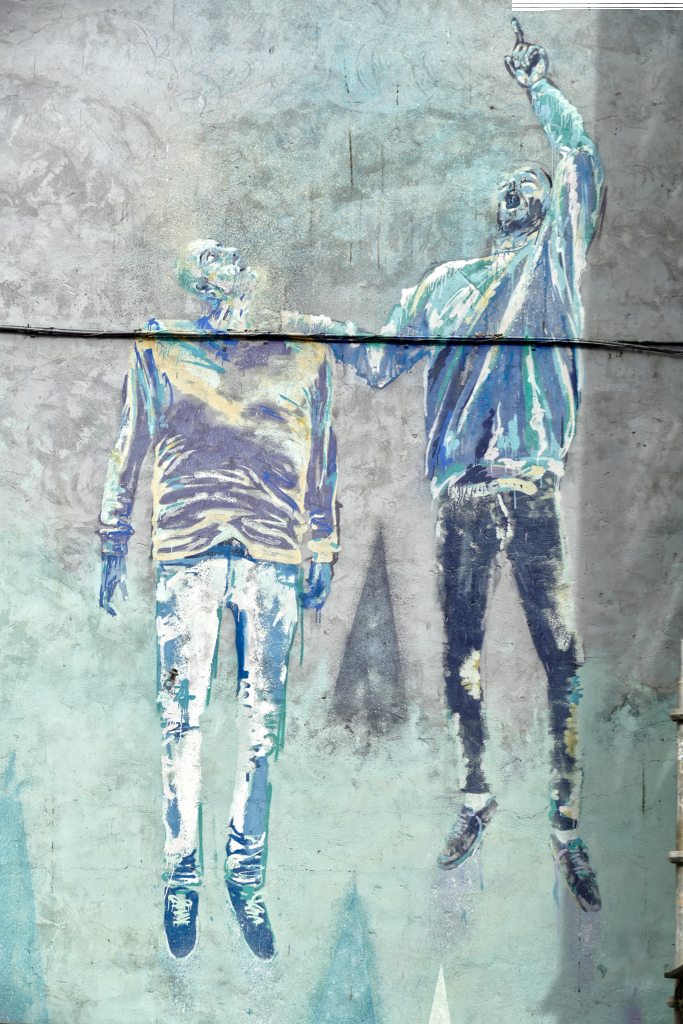 This map should help you find the murals I’m introducing in this post. Clicking on the slider symbol at the top left or the full-screen icon at the top right will display the whole map, including the legend. The map is divided into three individual layers, which allows you to see murals in one specific city at a time. To switch between maps of the three individual places, just open the legend in the upper left corner, and you can hide or unhide the respective layer as you wish.